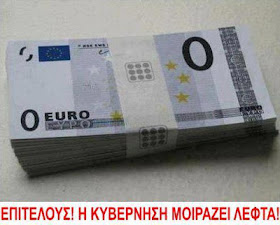 1. Χα, χα, έχεις δίκιο καλέ μου φίλε! Τέτοια ...λεφτά, είναι τα μόνο που υπάρχουν για το λαό! Τα άλλα που έχουν αριθμούς, είναι για την δική τους "μπάζα"! Δυστυχώς υπάρχουν ακόμα και σήμερα άνθρωποι που "πίνουν νερό" στο όνομα του "λεφτά υπάρχουν" κάπου νότια της Ελλάδας, σε κάποιο μεγάλο νησί, γραικύλοι που αρέσκονται να το παίζουν μάγκες και παλικαράδες (της φακής)!